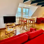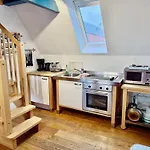 Kuchnia na terenie apartamentu obejmuje piekarnik i zmywarkę do naczyń.